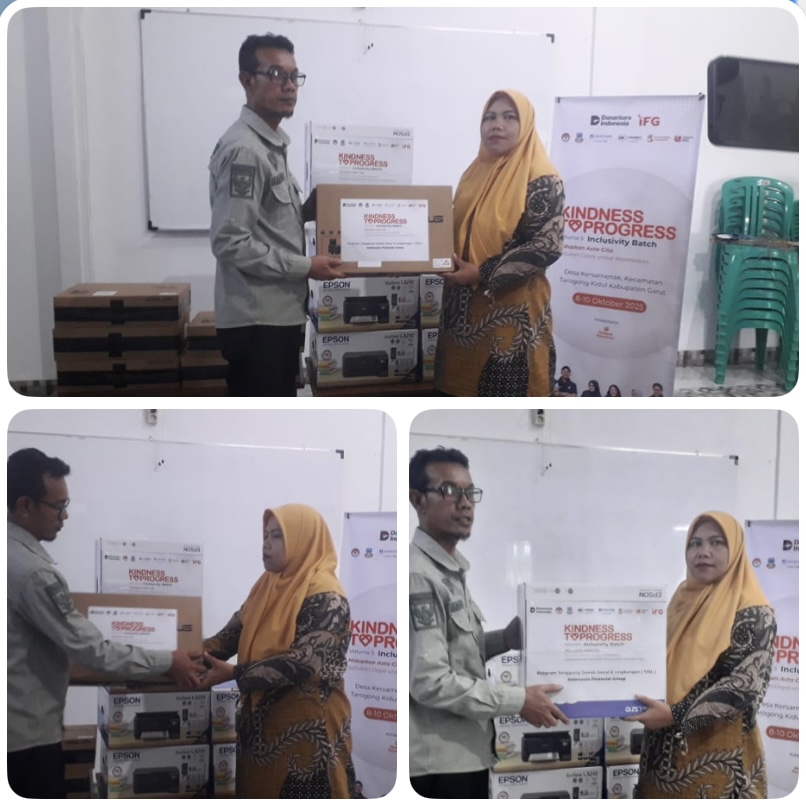 Dalam kegiatan tersebut, pihak penyelenggara menyerahkan bantuan berupa perangkat komputer, printer, dan perlengkapan digital kepada perwakilan masyarakat dan lembaga pendidikan setempat. Bantuan ini diharapkan dapat menunjang kegiatan belajar, administrasi desa, serta memperkuat literasi digital masyarakat Garut.