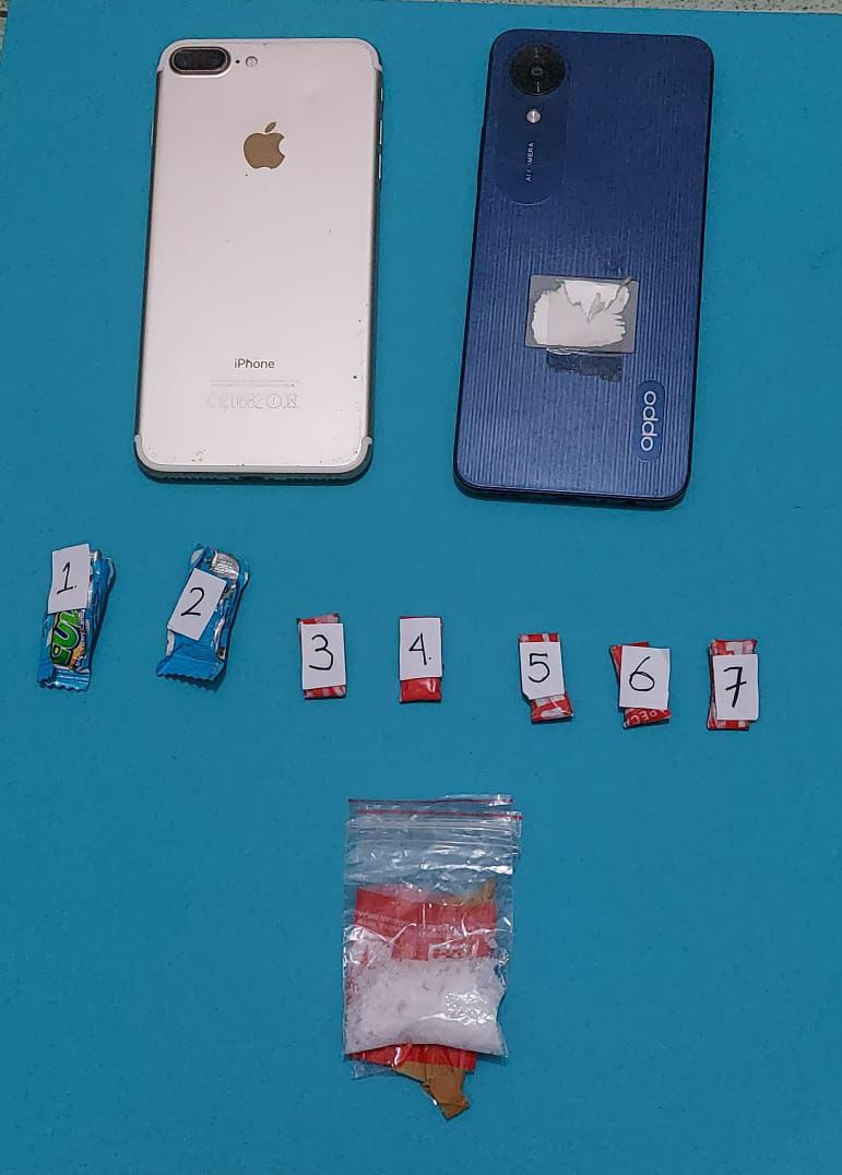 Dari tangan para pelaku, polisi menyita 8 paket sabu siap edar, 1 unit handphone Oppo A17k, dan 1 unit iPhone 7 Plus.